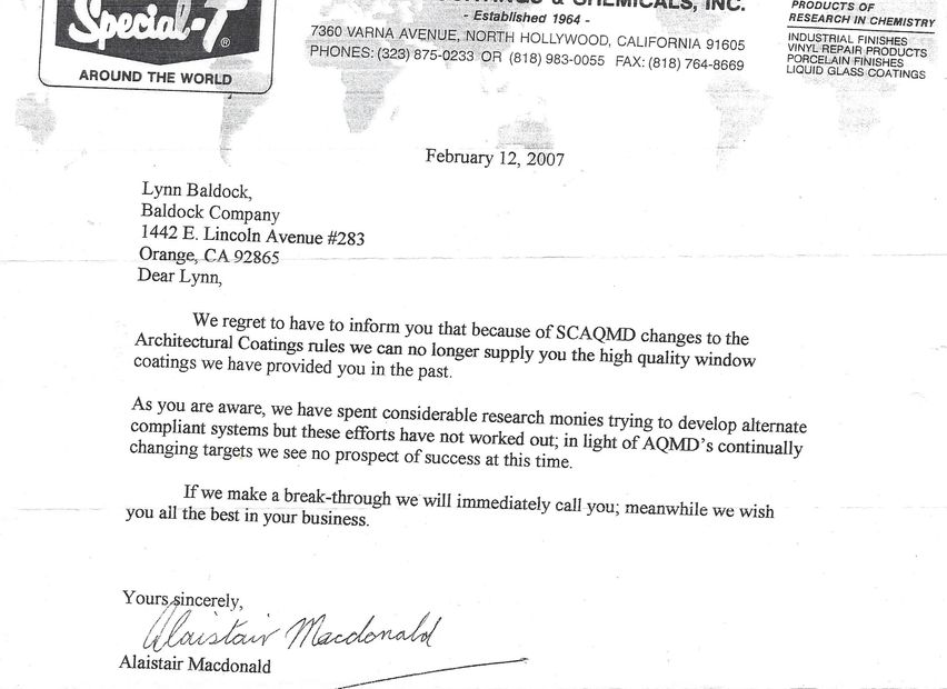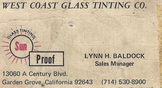 By 1973, Lynn had married Toni and had started a family, relinquishing his half of West Coast Glass Tinting to Dennis. Dennis sold West Coast Glass Tinting, and proceeded with his endeavor in tinting cars all over the southland. Lynn was able to take over the accounts of all the designers, which kept him throughout his whole career. They loved the way his coating did not turn purple or discolor, and would last 10 to 20 years.